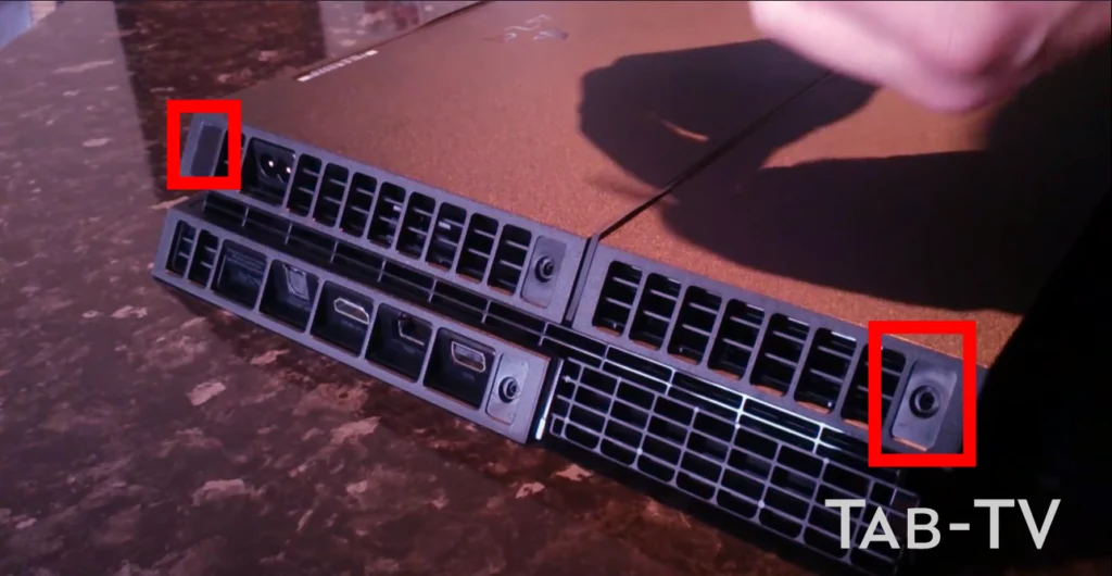 - Flip your PS4 upside-down to make back-side facing towards you