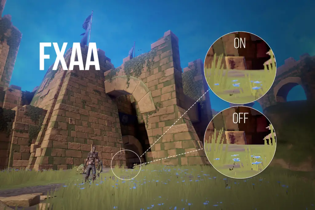 The idea of this algorithm is to average the colors of neighboring real (not virtual) pixels. FXAA is very blurry but requires minimal resources. Not the best option, but one of the most popular.